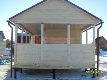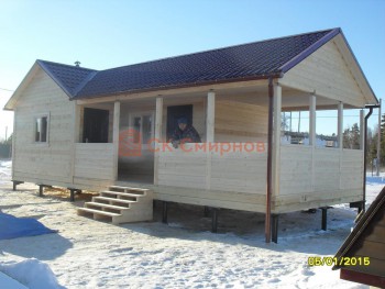 Такая одноэтажная баня 6х8 может быть построена из бруса. Ориентировочный срок строительства 10 дней.