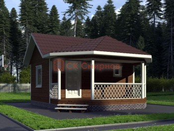 Такая одноэтажная баня 4х7 может быть построена из бруса. Ориентировочный срок строительства 15 дней.