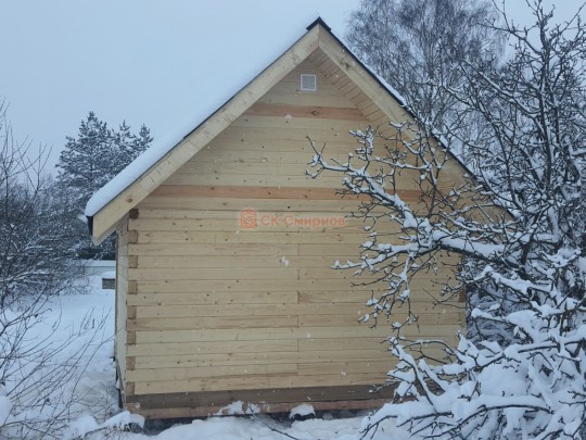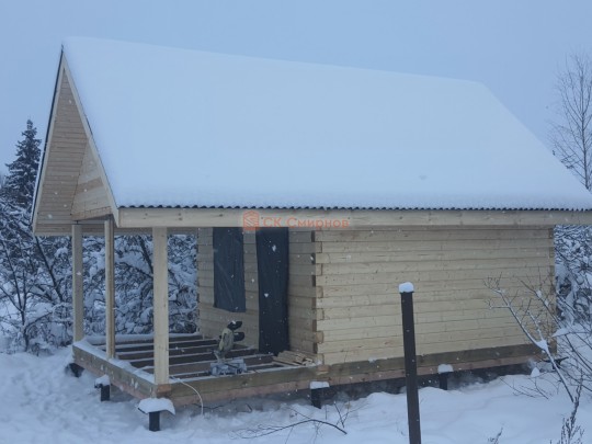 Такая одноэтажная баня 4х6 может быть построена из бруса. Ориентировочный срок строительства 14 дней.