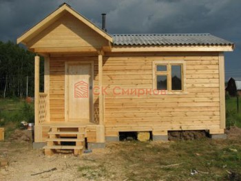Для строительства недорогой бани 5.5х4 метров СК Смирнов разработал проект №27 с обустроенной парной и комнатой отдыха. По планировке общая площадь составляет 22 квадратных метров. Можно выделить несколько особенностей проекта: терраса. Мы строим бани под ключ с полной отделкой снаружи и внутри.