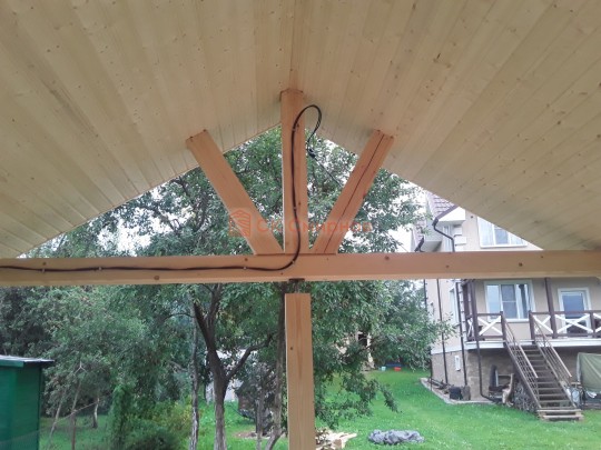 На террасе при условии что она есть делаем перила из строганной доски со всех сторон, столбы террасные также строганные, а не обрезки профилированного бруса с шипом и пазом. Домкратики на столбах для дальнейшей регулировки. Балясины будут сделаны аккуратно. Обратите внимание что в дешёвых случаях это может быть и будет просто вагонка прибирая к неотесанной доске снаружи и столбы будут не квадратные а просто профилированный брус как на видео.