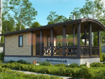 Терраса необычайно привлекательной формы дает своему обладателю широкий спектр возможностей: здесь можно установить небольшой мангал и садовую мебель, для полноценного отдыха между принятиями банных процедур. Для вечерних посиделок террасу можно украсить цветами и небольшой прозрачной гардиной, таким образом, вы создадите великолепный уголок, в котором можно будет послушать пение птиц или стрекотание кузнечика.