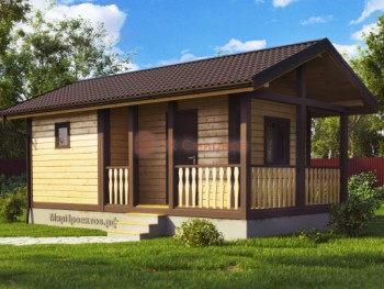 В том случае, если на дорогие изыски средств не хватает, то идеальным решением станет предлагаемый нами проект угловой бани из бруса 6х5 с трапециевидной террасой. Стены парной возводятся с применением профилированного бруса толщиной 9х14 или 14х14 см, сборка производится на нагеля из металла.