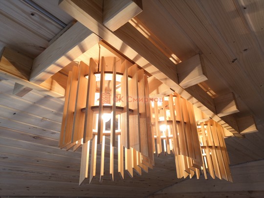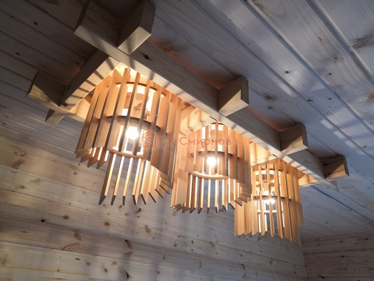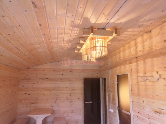 В этой серии бань делается электропроводка открытая, выключатели, светильники, розетки.