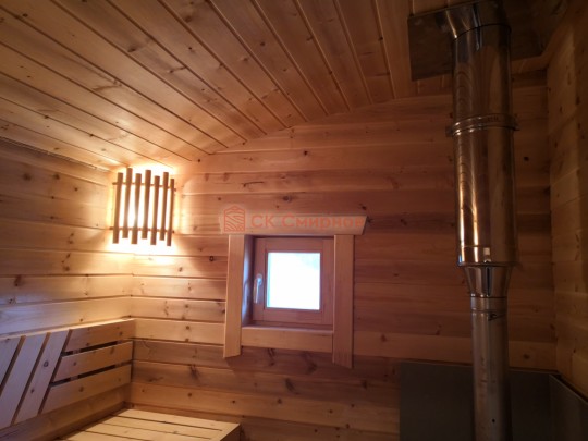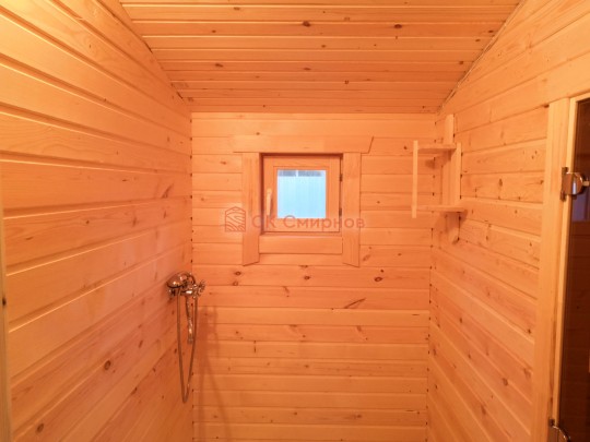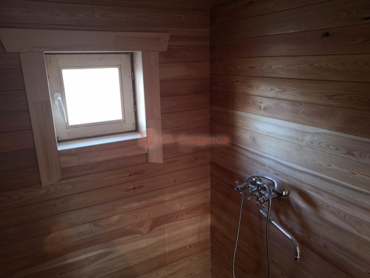 В данной бане мы используем окна вытянутой формы не открывающиеся по умолчанию, но можно за небольшую доплату сделать их открывающимися.