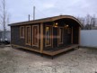 Можно выделить несколько особенностей проекта: терраса, округлая крыша, панорамные стеклопакеты, скамейки с откидными крышками, электропроводка, дизайнерская люстра. Мы строим бани-дома каркасной сборки с утеплением под ключ с полной отделкой снаружи и внутри.