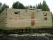 Из профилированного клееного бруса 9х14см, 14х14 см или 14х19 см. Сборка сруба в теплый угол на нагеля или гвозди 200 мм со сверлением отверстия в верхнем брусе (в зависимости от вида бруса).