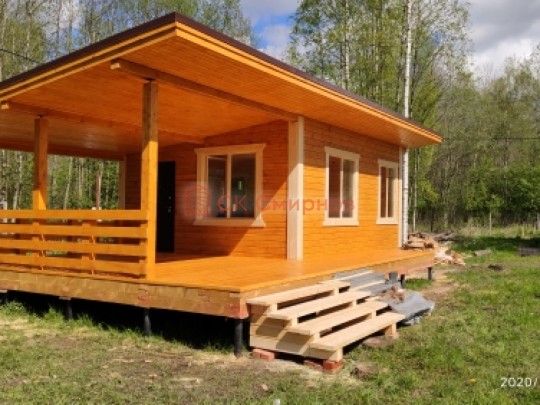 Строили из клееного бруса 140х140 с улучшенным финским профилем сразу с отделкой под ключ. Также можно заказать строительство из сухого бруса камерной сушки, в том числе с компенсационными пропилами. По цене это будет немного дешевле. Из бруса естественной влажности тоже строим, но только под усадку. В качестве фундамента оптимальным будет свайно-винтовой.