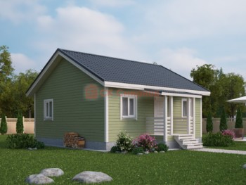 На фото представлен проект дачного дома №279 габаритами 6х8.5 метров и отличной планировкой общей площадью 51 квадратных метров. Можно выделить несколько особенностей проекта: 2 спальни, кухня-гостиная, терраса, санузел. Дом можно построить по каркасной и каркасно-щитовой технологиям. Выбор материалов для наружной отделки обсуждается с каждым заказчиком в индивидуальном порядке.