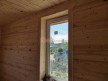 Это одноэтажная дача 6 на 6 с нежилым чердаком (лестницы нет). Пространство внутри разделено на 3 помещения. В основе лежит брусовой каркас, который снаружи обшит имитацией бруса 20х190, а изнутри сортовой вагонкой. Двускатная крыша покрыта хорошей металлочерепицей GrandLine с полимерным напылением. Изначально ставили деревянные стеклопакеты, но в ходе строительства клиент поменял решение и привёз свои пластиковые окна. Входная дверь Аргус 9.